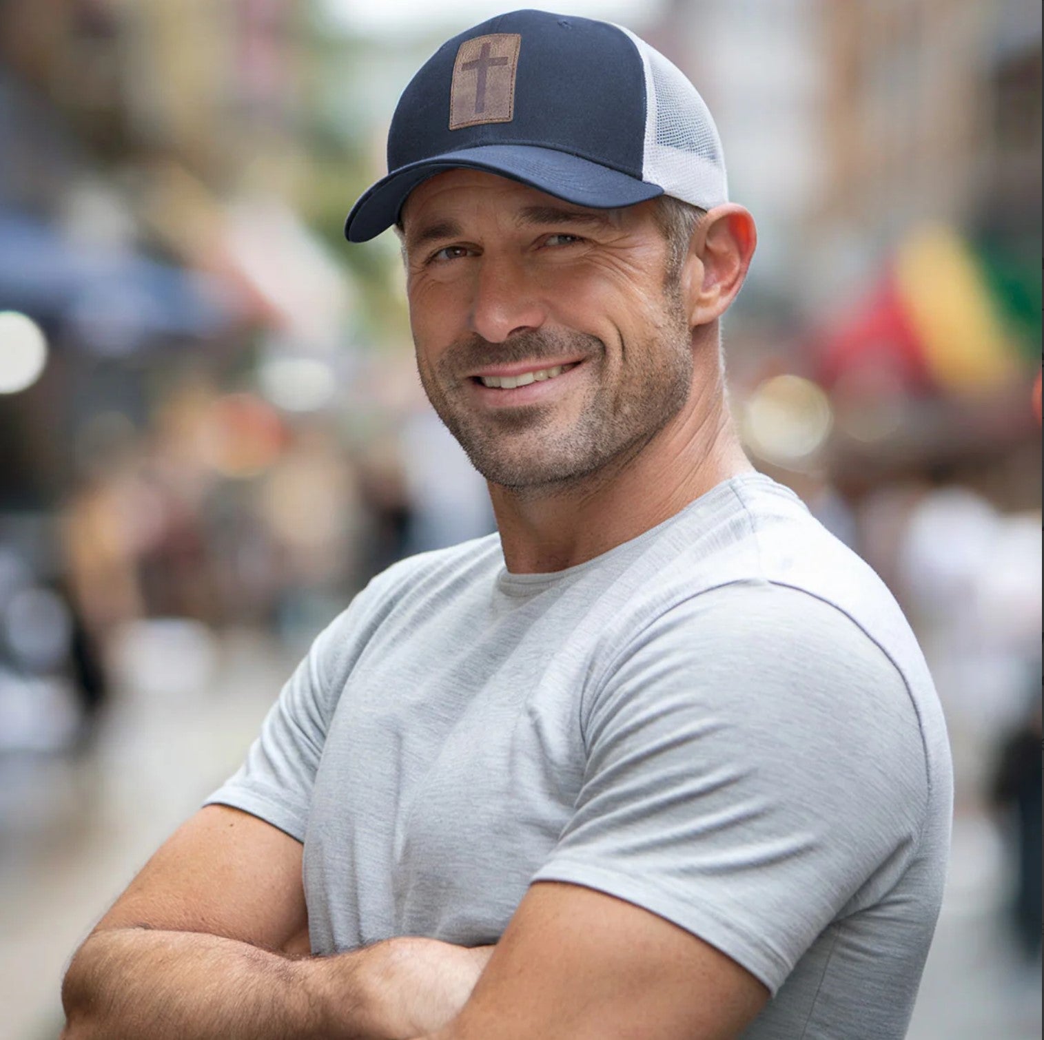 Faith meets function in this timeless men’s cap, featuring a genuine leather patch debossed with a bold cross design. The mid-rise fit strikes the perfect balance—structured yet comfortable—making it your go-to headwear for everyday wear, workdays, or weekend adventures.