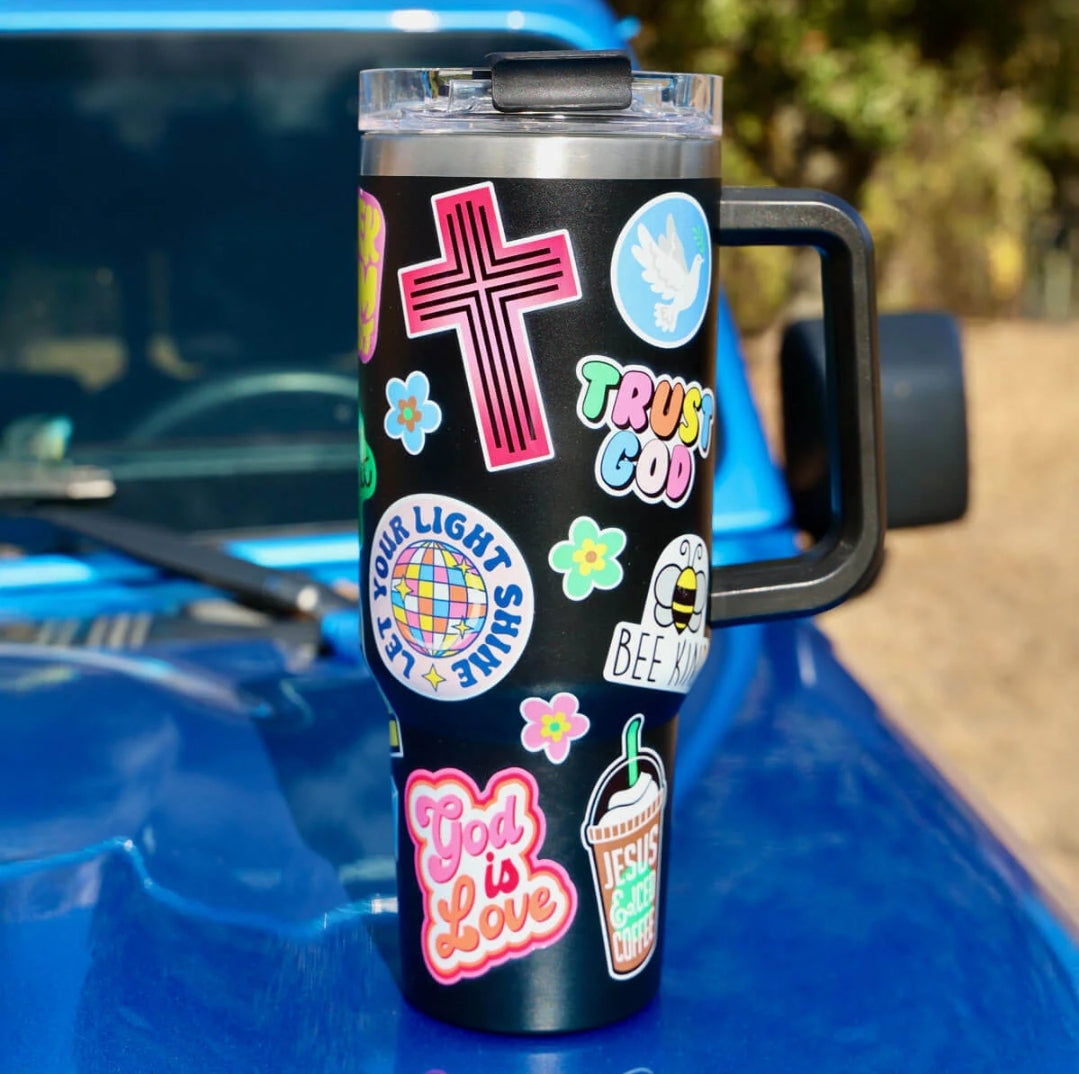 Take your faith wherever life leads with this sleek and meaningful “Stick With Jesus” 40 oz stainless steel mug with straw in classic black. Complete with a sturdy handle, straw, and acrylic lid, it’s perfect for keeping your drink just the way you like it—whether you're at your desk, on campus, or exploring the outdoors.